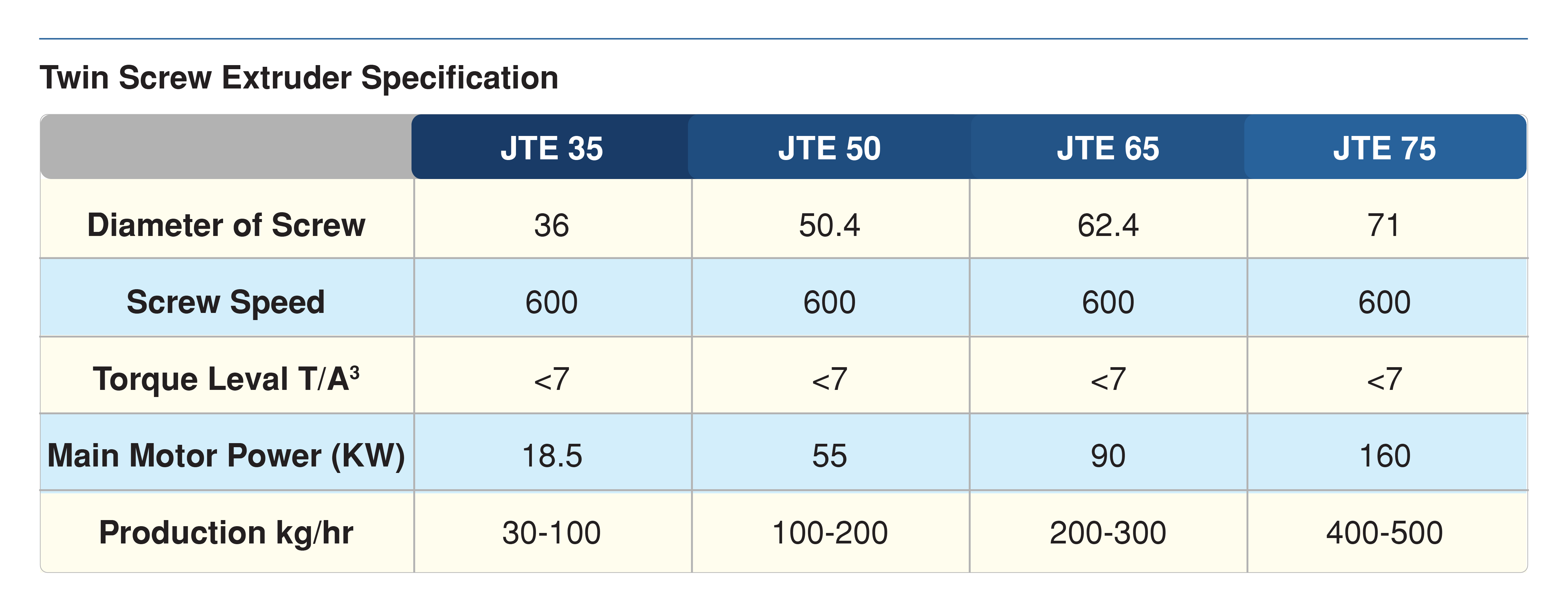 - Screw configurations as per material processing for better dispersion and properties.